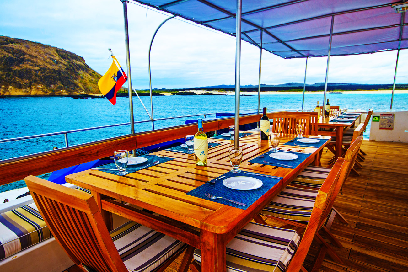 Vor dem Mittagessen werden sie weiter nach Santa Fe segeln, eventuell begleitet von Großen Tümmlern.