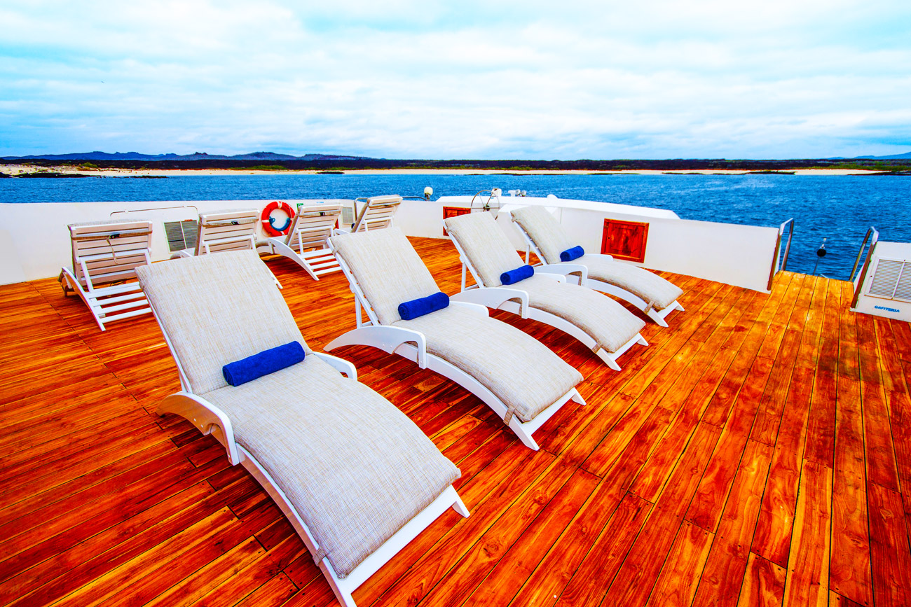 Nach dem Mittagessen werden Sie direkt von einer Galapagos-Seelöwen Kolonie am Strand erwartet, wo Sie entweder Zeit für ein erfrischendes Bad oder für außergewöhnliches Schnorcheln umgeben von tropischen Rifffischen im kristallklaren Wasser von Barrington Bay haben. Darüber hinaus sehen Sie weitläufige Opuntien-Kakteen-Wälder. Die größten Kakteen der Insel haben extrem dicke Stämme und können über 10 Meter groß werden. Am Ende dieses Vormittags erleben Sie eine nasse Landung am Strand von Santa Fe und unternehmen einen geführten Naturspaziergang. Diese außergewöhnliche Insel ist ein Überbleibsel des wahrscheinlich ältesten Vulkans auf Galapagos.