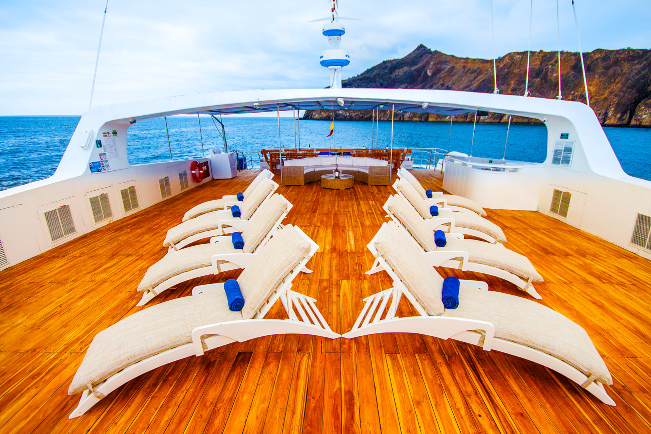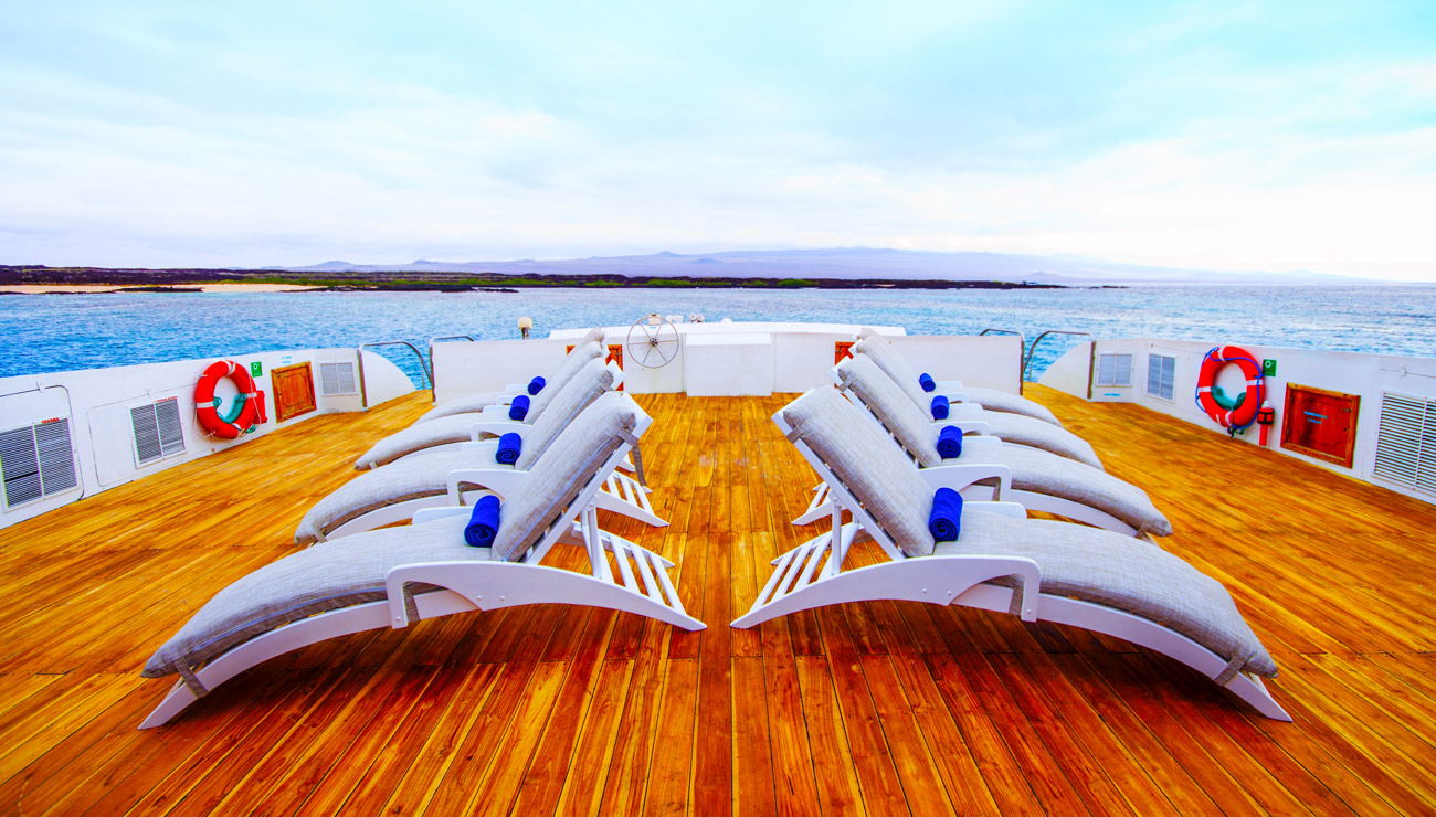 Nach dem Frühstück werden Sie einen unvergesslichen geführten Spaziergang auf South Plaza unternehmen, welcher der beste Ort ist, um den einheimischen Galapagos-Landleguanen zu begegnen. Beachten Sie außerdem die einzigartige Mischung zwischen einer männlichen Meerechse und eines weiblichen Landleguans. Angekommen auf der obersten Kante, ergibt sich ein beeindruckender Blick auf dröhnende Wellen, die rund 20 Meter unter Ihnen gegen die massiven Klippen schlagen. Wolken aus Sturmvögeln, Sturmschwalben, Sturmtauchern und Noddiseeschwalben begeistern mit ihren spektakulären Flügen. Nehmen Sie Ihren Feldstecher mit und verpassen Sie nicht die Rotschnabel-Tropikvögel mit ihrem anmutigen Schwany und und ihren spektakulären Paarungskämpfen. Diese Klippen sind auch die Nistplätze der einheimischen Gabelschwanzmöwen.