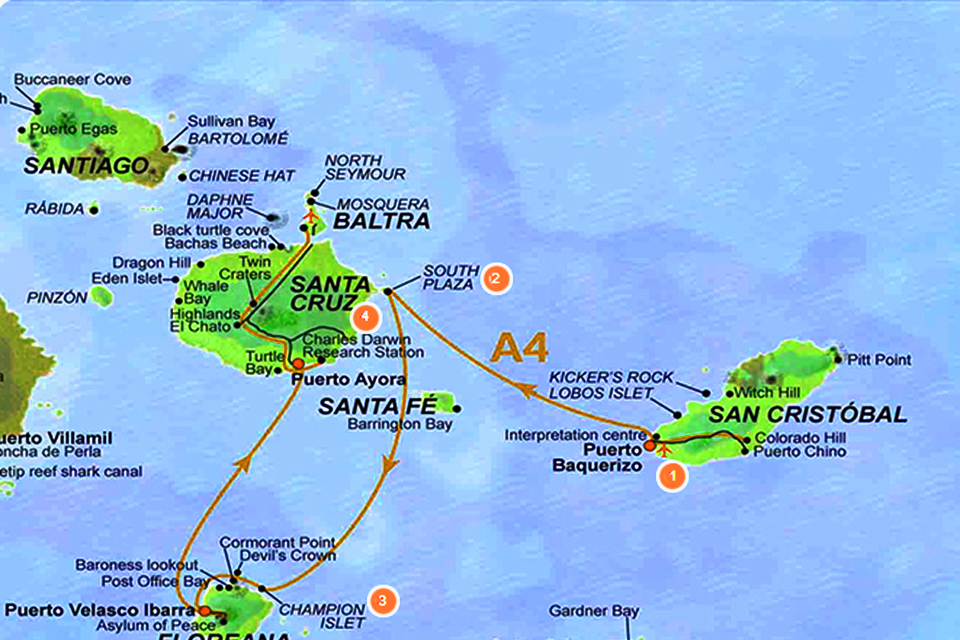 Während der Fahrt zur Champion Insel, wird das Schiff häufig durch große Tümmler begleitet und Sie können die Tiere aus kurzer Entfernung springen sehen. Unter Wasser sind die Galapagos Seelöwen spielerische Akrobaten, die zu einer Attraktion wurden. Es gibt außerdem jede Menge Rifffische und vielleicht sogar eine Suppenschildkröte zu sehen. Ein Schlauchboot navigiert Sie entlang der Küstenlinie, wo Sie viele einheimische Meeresvögel entdecken werden einschließlich der Galapagos Pinguine, Blaufußtölpel, prachtvolle Fregattvögel und Rotschnabel Tropikvögel, Gabelschwanzmöwen und Lavareiher. So mancher Vogelbeobachter wünscht sich zudem, einen flüchtigen Blick auf die Floreanaspottdrossel oben auf den Opuntien werfen zu können. Diese Spottdrossel ist eine naturwissenschaftliche und historische Schlüsselart, weil sie Darwin auf die Spur der Theorie der Adaptiven Radiation führte.
