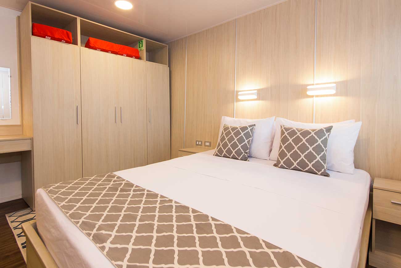 Die Unterbringung in Doppelkabinen (Doppelbett oder 2 Einzelbetten) mit privatem Badezimmer*