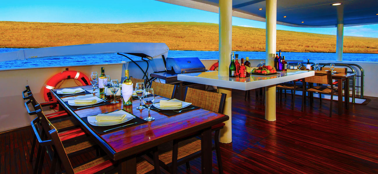 Nach dem Essen werden Sie direkt von einer Galapagos-Seelöwen Kolonie am Strand erwartet, wo Sie entweder Zeit für ein erfrischendes Bad oder für außergewöhnliches Schnorcheln umgeben von tropischen Rifffischen im kristallklaren Wasser von Barrington Bay haben. Darüber hinaus sehen Sie weitläufige Opuntien-Kakteen-Wälder. Die größten Kakteen der Insel haben extrem dicke Stämme und können über 10 Meter groß werden. Am Ende dieses Vormittags erleben Sie eine nasse Landung am Strand von Santa Fe und unternehmen einen geführten Naturspaziergang. Diese außergewöhnliche Insel ist ein Überbleibsel des wahrscheinlich ältesten Vulkans auf Galapagos. Ihr Reiseführer wird entscheiden ob ein leichter, kurzer Rundgang oder eine anstrengende, längere Wanderung landeinwärts folgt (mittelschwer, ungefähr 3 km).